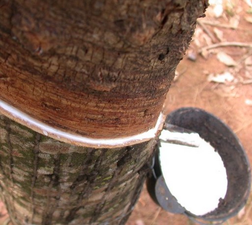 世界上約有2000種不同的植物可生產(chǎn)類似天然橡膠的聚合物,已從其中500種中得到了不同種類的橡膠,但真正有實(shí)用價(jià)值的是巴西三葉橡膠樹。橡膠樹的表面被割開時,樹皮內(nèi)的乳管被割斷,膠乳從樹上流出。從橡膠樹上采集的乳膠,經(jīng)過稀釋后加酸凝固、洗滌,然后壓片、干燥、打包,即制得市售的天然橡膠。天然橡膠根據(jù)不同的制膠方法可制成煙片、風(fēng)干膠片、縐片、技術(shù)分級干膠和濃縮膠乳等。